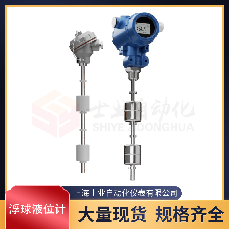 浮球液位計(jì)由浮球、插桿等組成。浮球液位計(jì)通過連接法蘭安裝于容器頂上,浮球根據(jù)排開液體體積相等等原理浮于液面,當(dāng)容器的液位變化時(shí)浮球也隨著上下移動(dòng),由于磁性作用,浮球液位計(jì)的干簧受磁性吸合,把液面位置變化成電信號,通過顯示儀表用數(shù)字顯示液體的實(shí)際位置,浮球液位計(jì)從而達(dá)到液面的遠(yuǎn)距離檢測和控制。