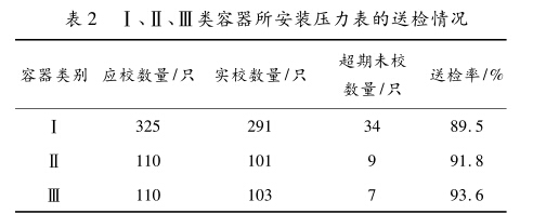 TSG R0004 - 2009 根據(jù)壓力容器的介質(zhì)、設計壓力和 容積等將壓力容器劃分為I、II、III類。表2是將三年內(nèi)的 壓力容器定期檢驗報告按容器類別進行分類。I、II、III類 壓力容器所用壓力表的送檢率逐漸提高,m類壓力容器所用 壓力表的送檢率要顯著高于i類壓力容器。這反映出企業(yè) 對于不同類別壓力容器的安全附件重視程度有所差異。