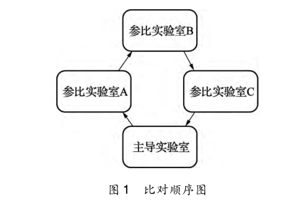 先由主導實驗室進行檢定,然后按順序由各 參比實驗室進行檢定,最后由主導實驗室再次檢 定,如圖1所示。