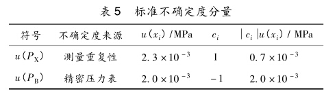 輸入量Px的標準不確定度來源主要是被測精 密壓力表的測量重復性,可通過連續(xù)測量得到, 用A類方法進行評定。