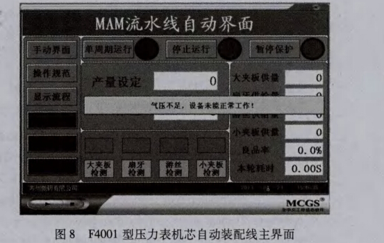 圖8 F4001型壓力表機芯自動裝配線主界面
