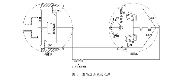 滑油壓力表由壓力傳感器、指示器、電源變壓器三 部分組成?;蛪毫鞲衅鲗⒒蛪毫π盘?hào)轉(zhuǎn)變?yōu)殡?/span> 信號(hào)給指示器,指示器指示出相應(yīng)的滑油壓力,電源變 壓器為指示器和傳感器提供一個(gè)交流電源,同時(shí)將變 流機(jī)輸出的115 V、400 Hz交流電變?yōu)?6 V、400 Hz交 流電,供滑油壓力傳感器和指示器使用。