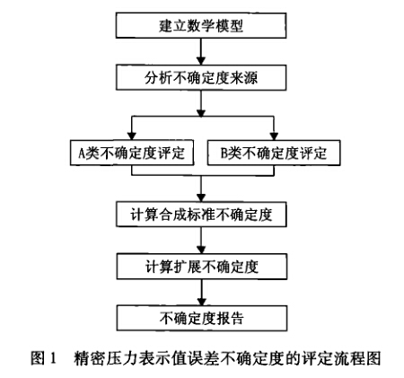 精密壓力表示值誤差不確定度的評(píng)定流程如圖1 所示0