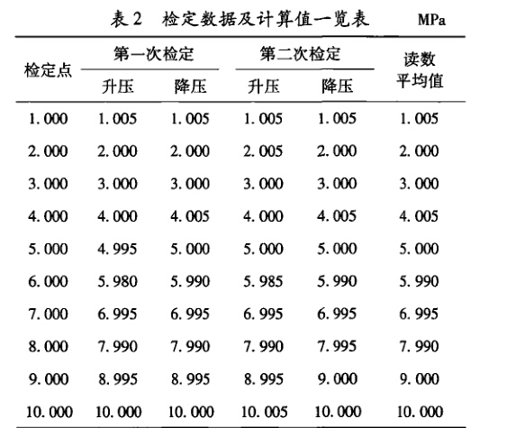 在本次檢定實(shí)例中,采用數(shù)字壓力計(jì)作為測(cè)量標(biāo) 準(zhǔn)??紤]到檢定中選用的數(shù)字壓力計(jì)準(zhǔn)確度等級(jí)為 0.05%FS,測(cè)量范圍為0~ 10 MPa,在檢定范圍內(nèi)服從