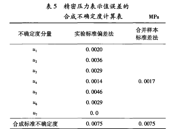 合并樣本標(biāo)準(zhǔn)差在精密壓力表示值誤差不確定度評(píng)定中的應(yīng)用