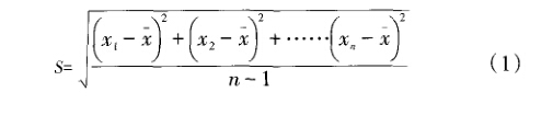 式中:S為標(biāo)準(zhǔn)偏差為測量次數(shù);為各次 的測量值,i=l…n0