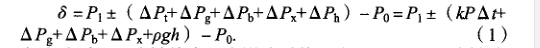 式(1)中:A:為被檢表溫度影響系數(shù),取0.000 4; P為被檢 表量程;A f為檢定時(shí)環(huán)境溫度與標(biāo)準(zhǔn);p為檢定時(shí)使用的介 質(zhì)的密度(水取1 x 103 kg/m3,變壓器油取0.86 x 103 kg/m3, 蓖麻油取0.93 x 103 kg/m3); g為當(dāng)?shù)刂亓铀俣龋ò矐c地區(qū) 取9.793 6 m/s2 ); h為被檢表指針軸與標(biāo)準(zhǔn)表取壓口的高度差。