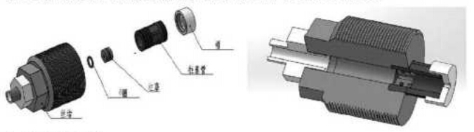 根據(jù)設(shè)計思路,設(shè)計了悛體效來圖,初步設(shè)計本裝置主要 由絲堵、活塞筒、密封活塞、底鄒機(jī)米四大部分組成。