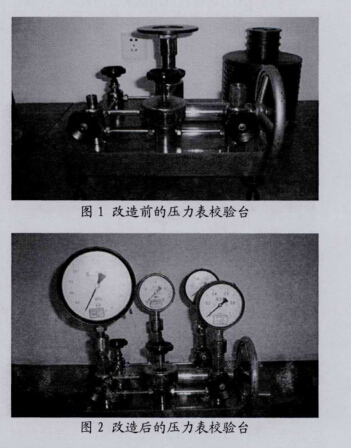 本文闡明了壓力表校驗臺的改造方案,指出了改造前后壓力表檢定裝置的差別及 改造后效果。