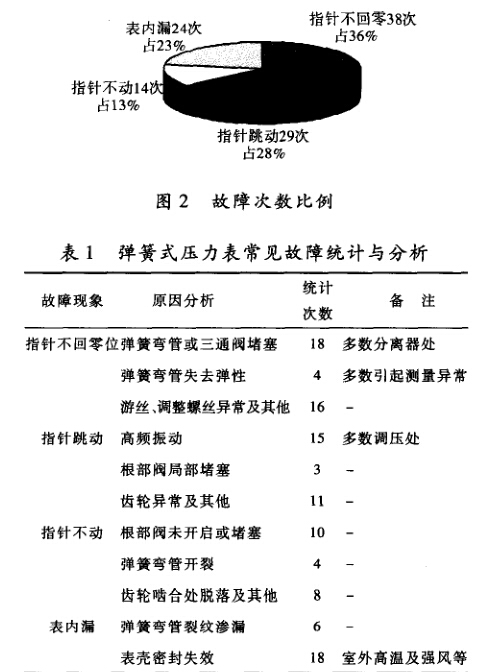 2007年7月~2012年7月,該公司南朗站區(qū) 的彈簧式壓力表故障分布情況如圖2所示,詳情 見(jiàn)表1。