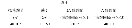計(jì)算平均值:(40. 02 + 40. 02 + 40. 02 + 40. 04)/4 = 40. 025 ; (40. 02 + 40. 04 + 40. 04 + 40. 04) / 4 = 40. 035 ; (40. 04 + 40. 04 + 40. 06 + 40. 06)/4 = 40.05 其修約過程如表3所示。
