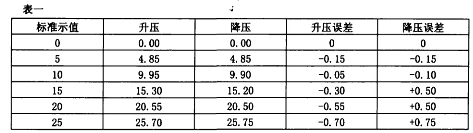 有一塊型號為Y0-60,規(guī)格為025Mpa的氧壓表,其準(zhǔn)確度為2.5級,外觀良好,經(jīng)校驗臺檢定, 示值如表一所示:(其最大允許誤差為。0.625Mpa)