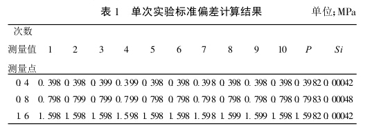 把1. 6 MPa 0.4級(jí)彈簧管式壓力表在0. 4 MPa、 0. 8MPa、1. 6MPa重復(fù)性條件下分別測(cè)量10次,獲得3組 測(cè)量列,具體數(shù)字見表1。
