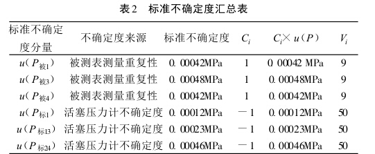 標(biāo)準(zhǔn)不確定度匯總表,見表2。