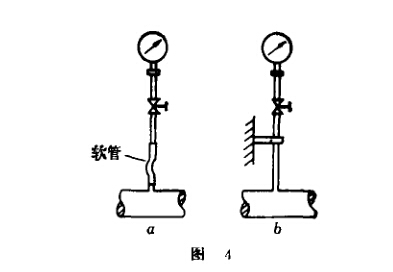 (3)連接管固定減震法:把靠近壓力表 的連接管處固定在無震動或震動小的部位上 (見圖4)。