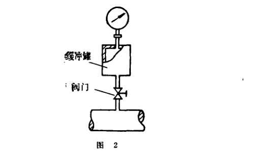 2.測量有脈沖或沖擊的介質(zhì)壓力時,應(yīng) 加緩沖罐(見圖2),以緩解由于被測介質(zhì)急劇變化給壓力表帶來的震動。