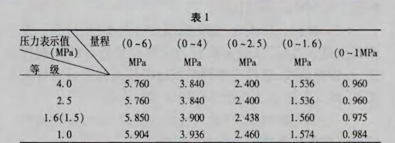 其他準(zhǔn)確度等級(jí)和量程的壓力表,在檢定其測(cè)量上 限點(diǎn)的示值誤差時(shí),壓力表示值依照表1選擇加壓: