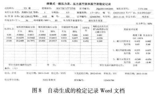 以智能壓力校驗儀為標準器和便攜式(固定)液 壓源,以Visual C + +6.0為軟件開發(fā)平臺,采用反校 法構(gòu)建的壓力表自動檢定系統(tǒng),實現(xiàn)了壓力儀表的快 速可靠檢定、報表自動生成與檢定數(shù)據(jù)管理,保證了系 統(tǒng)操作的便捷、高效。該系統(tǒng)投人應用后,檢定一塊普 通壓力表只需10 min左右,大大提高了檢定效率。