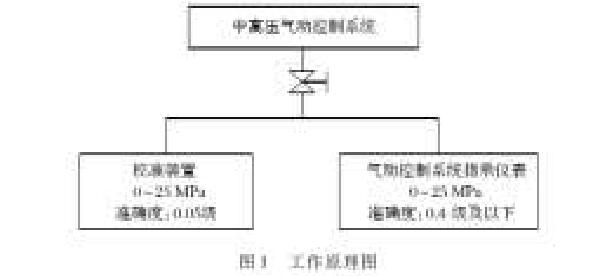 用現(xiàn)場校準(zhǔn)的方法,解決中高壓氣動控制系統(tǒng)中禁油禁水壓力儀表的校準(zhǔn)工作,同時(shí)實(shí)現(xiàn)對中高壓控制系統(tǒng)的壓力特 性進(jìn)行檢測。