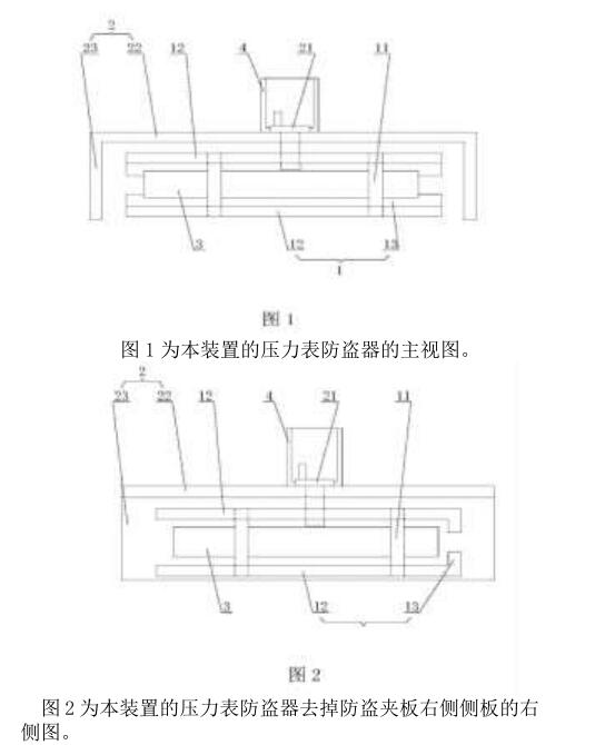 本裝置的目的是提供一種壓力表防盜器,其可保護(hù)壓力 表防止被盜,其結(jié)構(gòu)簡(jiǎn)單,制造、安裝方便。
